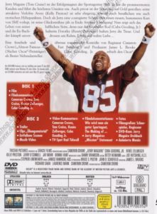 Disc 1: Filmkommentare: Cast + Crew Disc 2: Trailer Clips Übungsmaterial Entfallene Szenen Musik-Video Video-Kommentare: Cast + Crew TV-Spot Rod Tidwell Filmdokumentation: Wie wird man ein guter Sportagent, Making Of Jerry Maguires Mission Statement Fotos Filmografien DVD-Rom: Jerry Maguiere Drehbuch Animierte Menüs |
