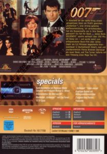 Kommentar von Regisseur Martin Campbell und Produzent Michael G. Wilson Original Kinotrailer Dokumentation: Die Welt von 007 Musikvideo "Goldeneye" von Tina Turner 12 TV-Spots Goldeneye Video-Journal 8-seitiges Booklet mit Hintergrundinformationen 2 original Kino-Trailer Featurette |