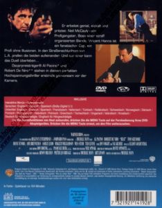 | Er arbeitet genial, eiskalt und präzise: Neil McCauly - ein Profigangster, Boss einer straff organisierten Bande. Vincent Hanna ist ein fanatischer Cop, ein Profi ohne Illusionen. In den Strassenschluchten von L.A. prallen die beiden aufeinander: Und nur einer kann das Duell überleben... Oscarpreisträger Al Pacino und Robert De Niro stehen in diesem perfekten Hochspannungsthriller erstmals gemeinsam vor der Kamera. |