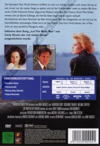 | Die Sekretärin Tess McGill (Melanie Griffith) ist nicht nur hübsch, sondern auch clever. Sie hat es satt, immer nur die zweite Geige zu spielen und auf der Karriere Leiter unten zu stehen. Bei ihrer neuen Chefin Katharine Parker (Sigouney Weaver) sieht Tess ihre Chance. Doch Miss Parker erweist sich als falsche Schlange, die fremde Ideen klaut und als eigene verkauft. Als Katharine sich beim Skiurlaub das Bein bricht, nutzt Tess die Gelegenheit, um mit viel List ins Geschäftsleben einzusteigen. Dabei lernt sie Jack Trainer (Harrison Ford) kennen, der in Tess nicht nur eine attraktive Managerin sieht... |
