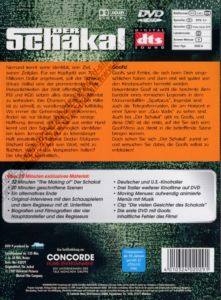Cine Edition mit 50 Minuten Specials Making Of Geschnittene Szenen Alternatives Ende Original-Interviews mit deutschen Untertiteln Biografien Kinotrailer Inhaltliche Fehler des Films (Goofs) Weitere DVD-Trailer Clip 'Die vielen Gesichter ddes Schakals' |