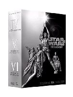 Die zweiseitige Packung besteht aus einem eleganten, geprägten Cover in Platin für die Breitbild-Version. Die Illustration zeigt die Helden der klassischen Trilogie, Luke Skywalker, Prinzessin Leia, Han Solo und die Droiden in einem Format, das seinen Ursprung im damaligen Veröffentlichungsposter hat. Auf der anderen Seite ist Darth Vader, der definitive Filmbösewicht, dessen Aufstieg und Fall der Kern der Saga ist.