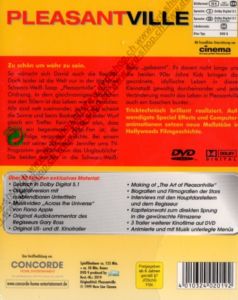 Musikvideo "Across the Universe" von Fiona Apple Making of "The Art of Pleasantville" Kommentar von Regisseur Gary Ross Original US- und Deutscher Kinotrailer Bio- und Filmografien der Hauptdarsteller und des Regisseurs Interview mit den Stars und dem Regisseur Kapitelanwahl zum Sprung in die gewünschte Filmszene 3 Trailer weiterer Filme auf DVD Animierte und mit Musik unterlegte Menüs |