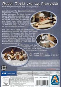 | Zum allerersten Mal die ganze Geschichte in ungekürzter Fassung: Robbi, der Roboter der dritten Roboterklasse, Tobbi, Menschenkind der dritten Grundschulklasse, und das Fliewatüüt, ein Vehikel, das fliegen, schwimmen und fahren kann, treffen sich auf dieser Doppel-DVD. Vier Stunden und 20 Minuten lang, um drei ganz verzwickte Aufgaben zu lösen. Die vom WDR liebevoll produzierte Puppenserie entstand 1972 nach dem gleichnamigen Kinderbuch von Boy Lornsen. Seinerzeit auf Vorreiterspur realisierte die Redaktion innovative Blue Screen-Szenen sowie aufwändige Filmkulissen. Einen Teil dieser genialen Ideen dokumentiert das Bonusmaterial auf dieser DVD: 'Wie das Fliewatüüt eigentlich fliegt'. 'Robbi, Tobbi und das Fliewatüüt' - TV-Kult und ein Stück Fernsehen aus den Kinderjahren. |