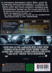 | Im interstellaren Niemandsland unserer Galaxis kreuzt die hochgerüstete Weltraumfestung Babylon 5. Ihre Mission: Sie soll den Frieden zwischen den verfeindeten Großmächten unserer Galaxis sichern. Nach Jahren erfolgreicher Vermittlung erhält Oberbefehlshaber Sheridan eine alarmierende Nachricht: An der Grenze des Universums bereitet das unheimliche Volk der Drakh eine gigantische Invasion vor… |